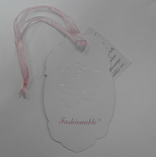 Techniques: Colour printed, Spot UV design,die cut shape,attached transparent ribbon and safety pin.